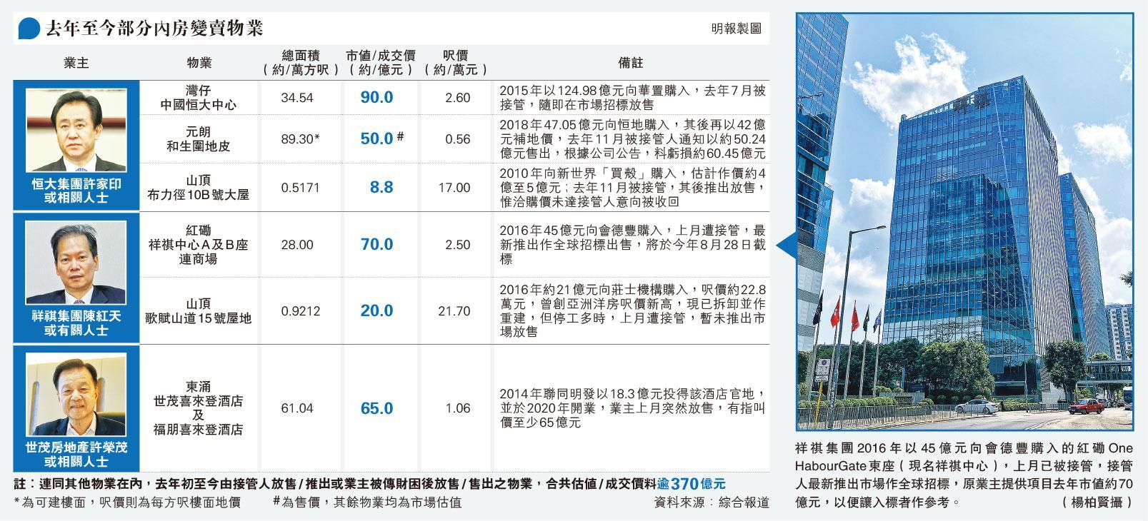 內房財困賣產 去年至今涉逾370億 恒大祥祺世茂為主 部分已被接管