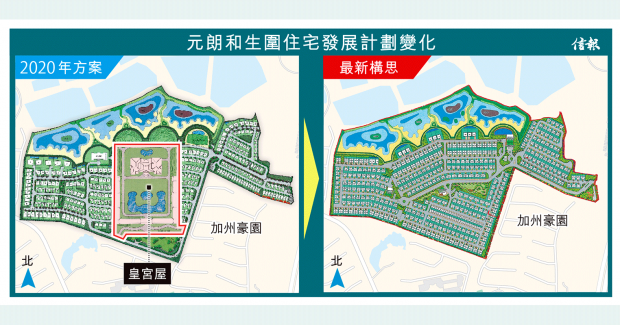 曾經由中資中國恒大(03333)持有的元朗和生圍大型住宅發展計劃,2020年獲城規會批准興建268幢洋房,當時地盤中間1幢樓面面積約20萬方呎的「皇宮屋」成為全城焦點。