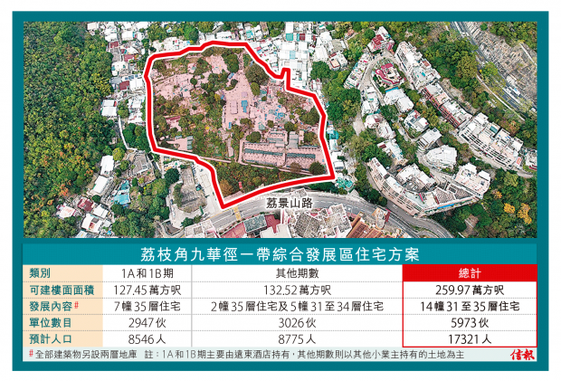 來源:信報 日期:2023-07-14荔枝角九華徑一帶未來有望大變身,遠東酒店(00037)向城規會申請,於九華徑一帶的「綜合發展區」(CDA)興建大型住宅項目,提供5973伙,單位數目相當於同區大型屋苑美孚新邨約1.31萬伙約45.6%,城規會將於今天審議該申請,規劃署不反對該申請,意味很大機會獲城規會「開綠燈」。